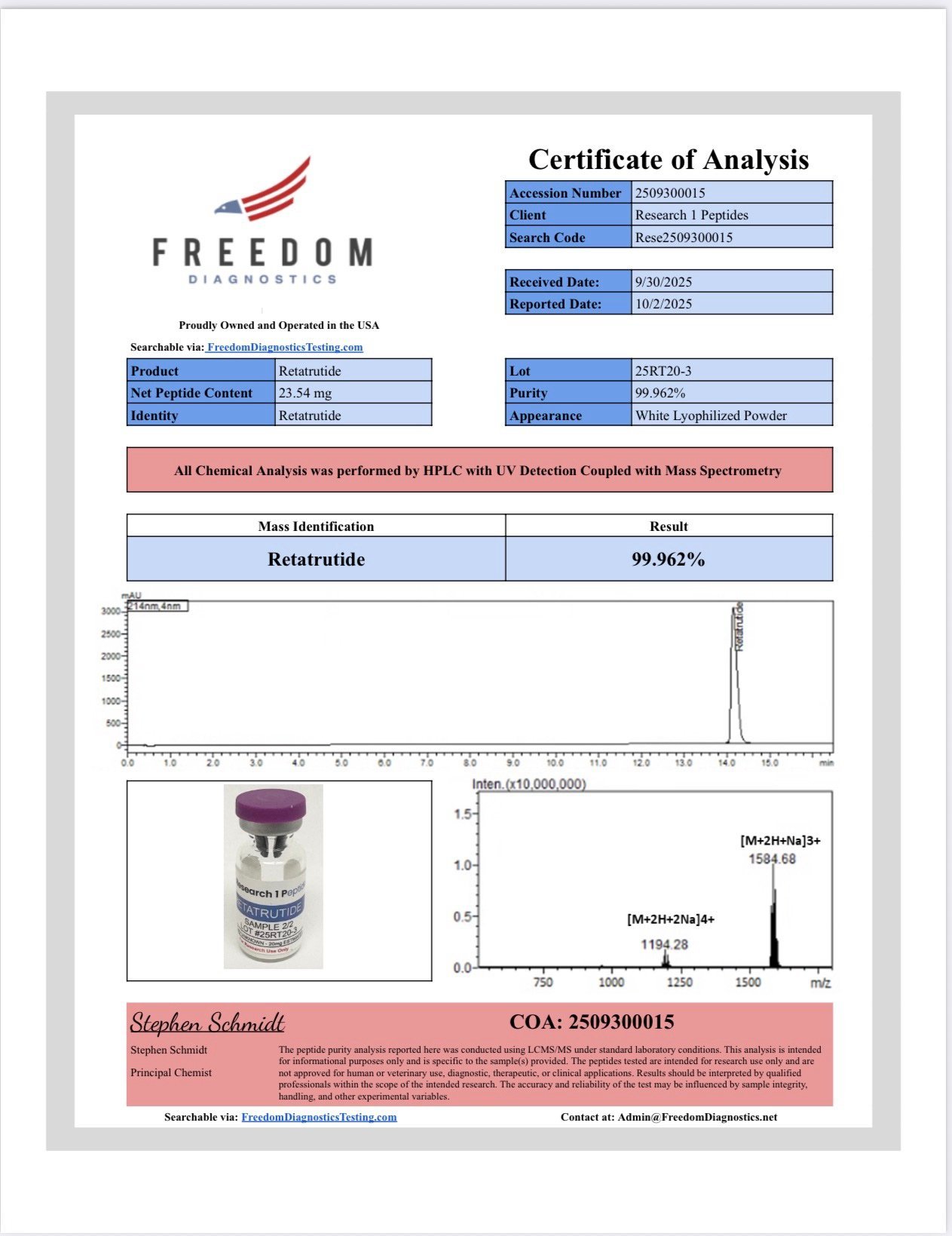 Customer service: orders@research1peptides.com
